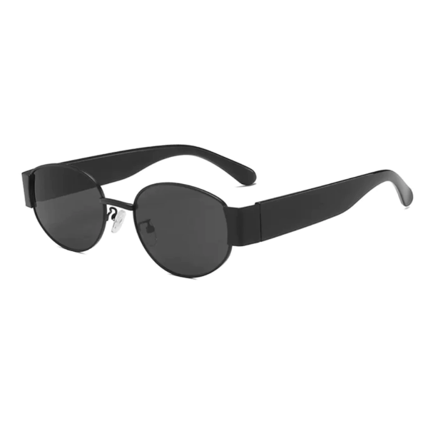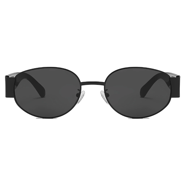 Estas gafas de sol destacan por su montura metálica dorada/negra de forma circular, dándoles un diseño distintivo y moderno. Las varillas negras contrastan con el marco metálico, creando un accesorio elegante y atemporal, perfecto para cualquier estilo.